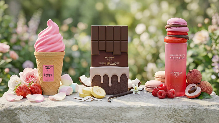 Arabiyat Sugar Collection by Arabiyat Prestige Launched in 2025 by UAE-based My Perfumes, the Arabiyat Sugar Collection is a line of 15 gourmand fragrances created specifically for Gen Z and younger consumers. The collection debuted at Beauty World Middle East in October 2025 and was developed in collaboration with three major fragrance houses—Givaudan, Technicoflor, and Iberchem—featuring 12 master perfumers including Guillaume Flavigny, Lucas Sieuzac, and Ana Gomez. Each fragrance is inspired by desserts and sweet treats, with offerings like Dulce de Leche, Matcha Latte, Strawberry Tres Leches, and French Vanilla Latte among others. The collection went viral before its official launch, with pre-orders secured globally.